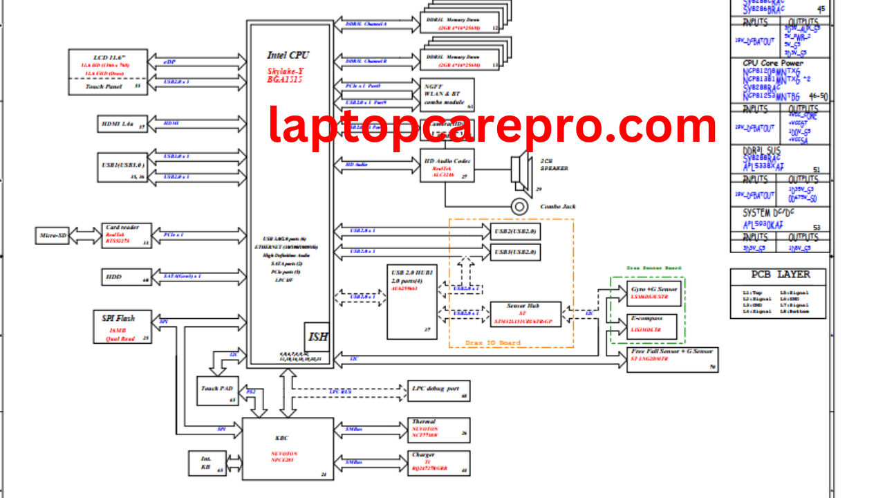 DELL INSPIRON 11 3000 DRAX SKL-YKBL-Y MB 15250-1 Schematic